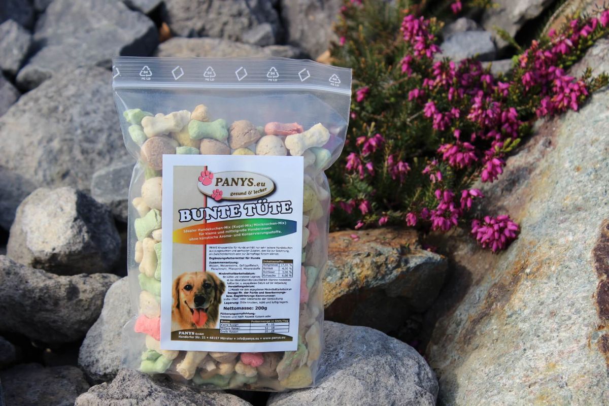 PANYS Bunte Tüte gibt es im praktischen wieder erschließbaren 200g Beutel. Sollten Sie und Ihr Liebling von der PANYS Bunte Tüte begeistert sein, können Sie diese auch im 500g Beutel oder 4,0kg Sack bestellen.